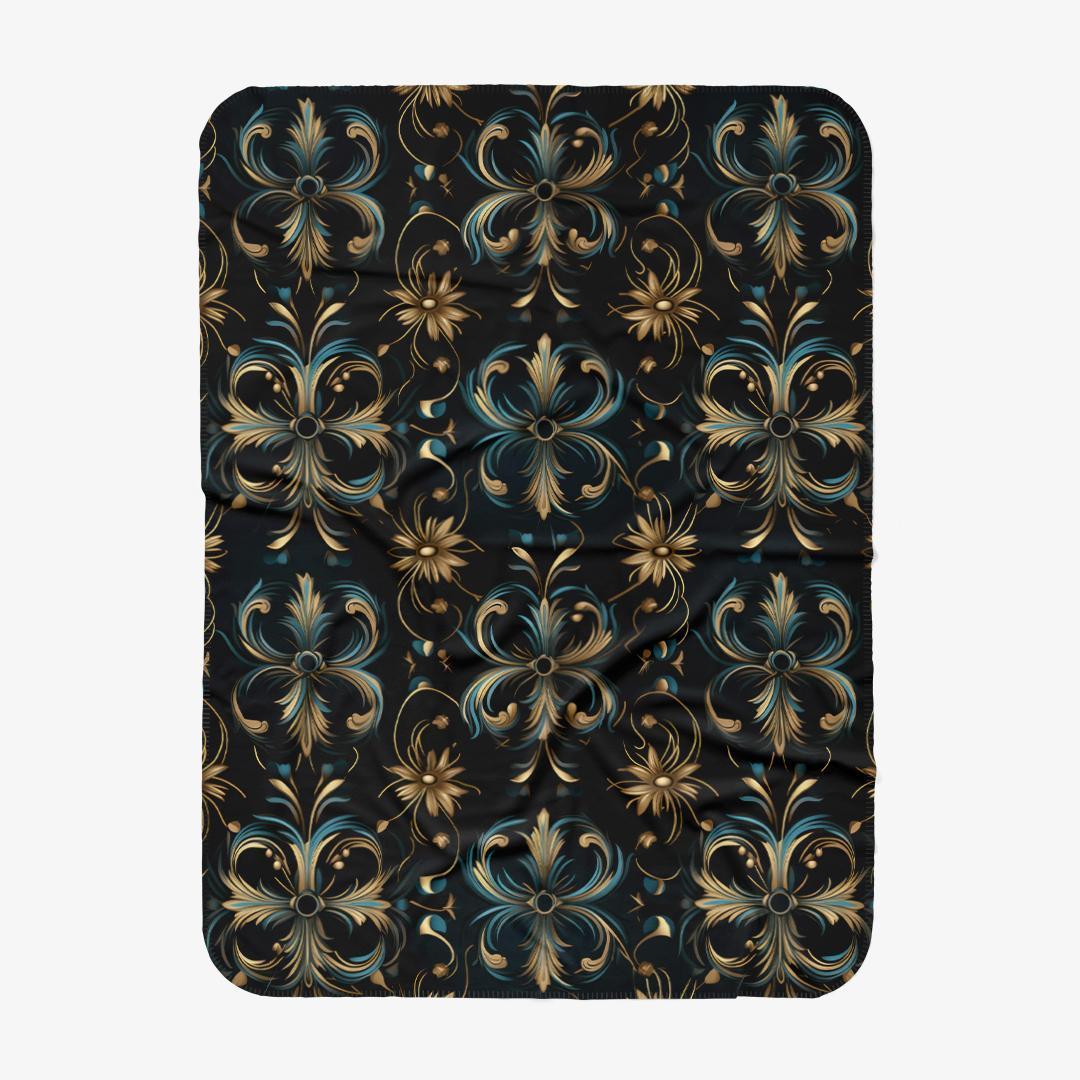 Plongez dans un univers où l’opulence rencontre le confort avec notre plaid Luxe, une pièce qui évoque la splendeur des époques révolues tout en restant ancrée dans la modernité. Le motif floral resplendissant, dans des nuances somptueuses d’or et de bleu, se détache magnifiquement sur un fond noir riche, offrant une expérience visuelle à la fois captivante et apaisante.