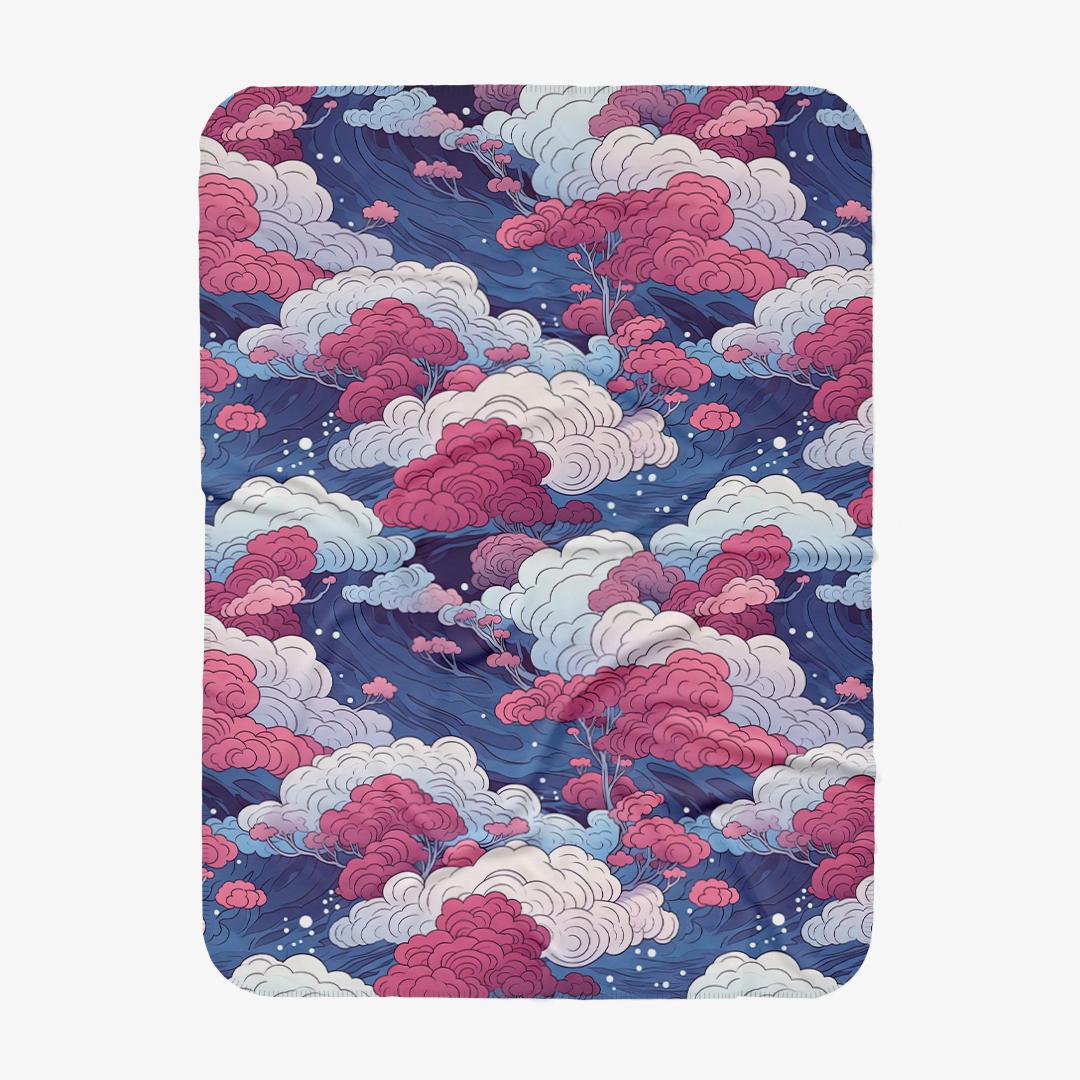 Évadez-vous dans un ciel féerique avec notre plaid aux motifs japonais, mêlant nuages roses et bleus pour un instant de douceur et un style enchanteur.